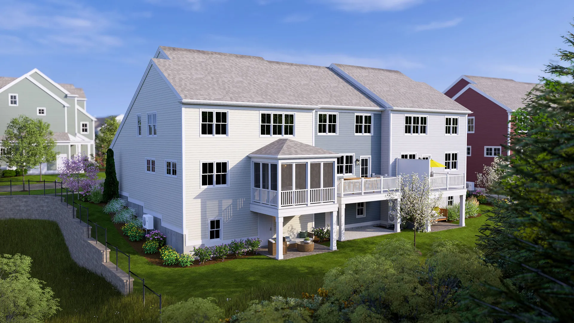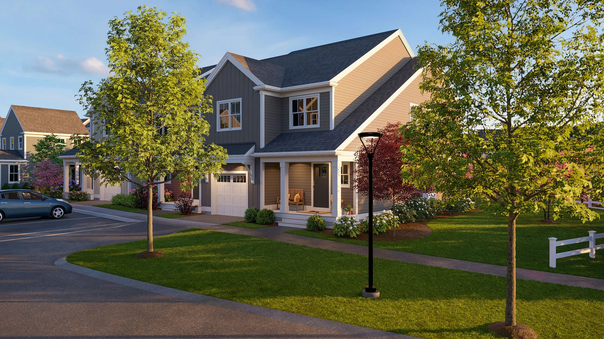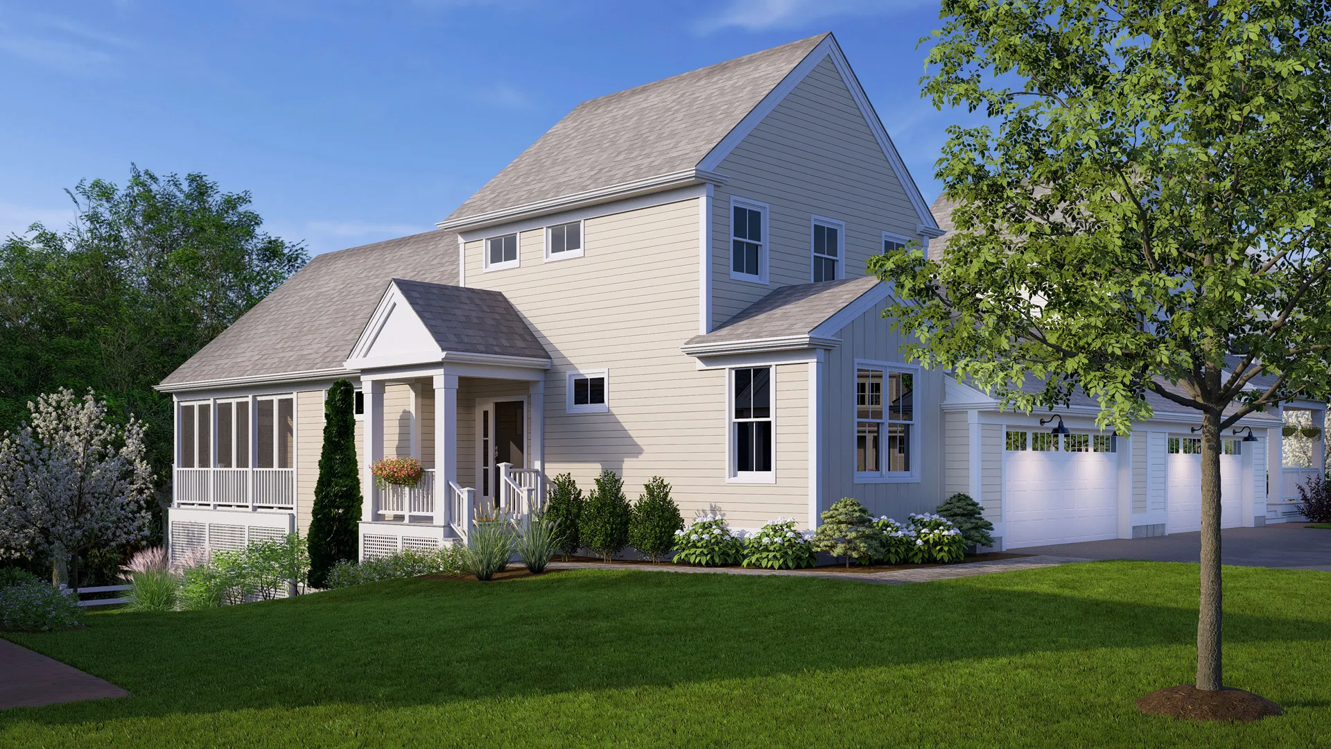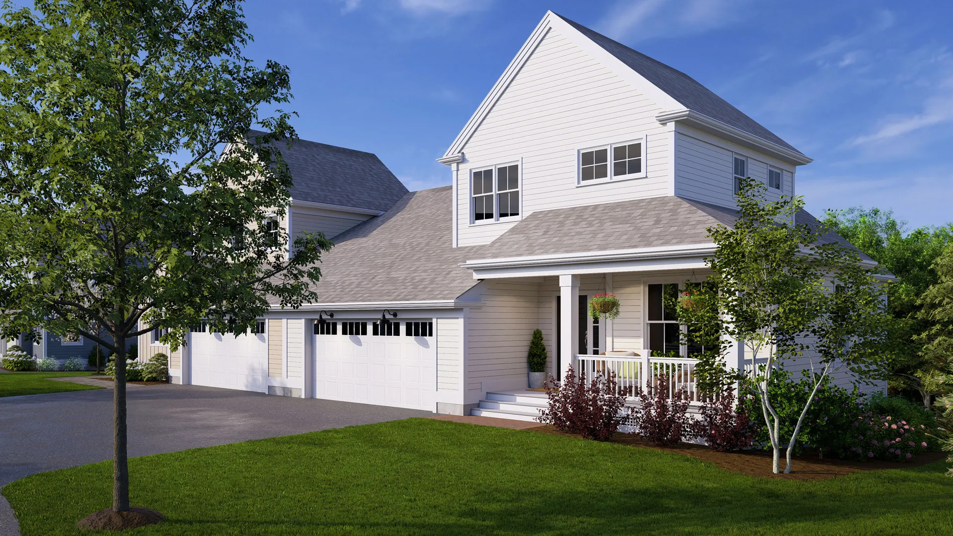 Alden's Reach is Thorndike's newest neighborhood in Plymouth, MA — an award-winning multi-generational community set against 75 acres of protected conservation land. Resort-style pool and poolhouse, walking trails, community garden, tot lot, fire pit, and half-court basketball. Seven floor plans with one-floor living options. Plymouth's waterfront dining, beaches, and Route 3 to Boston and the Cape all within minutes. The Expanded Oak takes Thorndike's most celebrated floor plan and gives it a gracious front porch welcome and expanded main-level living. First floor: bright open-plan living and dining, expanded den, primary suite — everything for daily life on one level. Two-car garage with direct entry. Second floor adds a bedroom and bath, expandable to a third. Add the optional screened porch and you've turned conservation views into a four-season outdoor room. 2–3 bedrooms + den, 2.5 baths, 1,989 sq ft.
