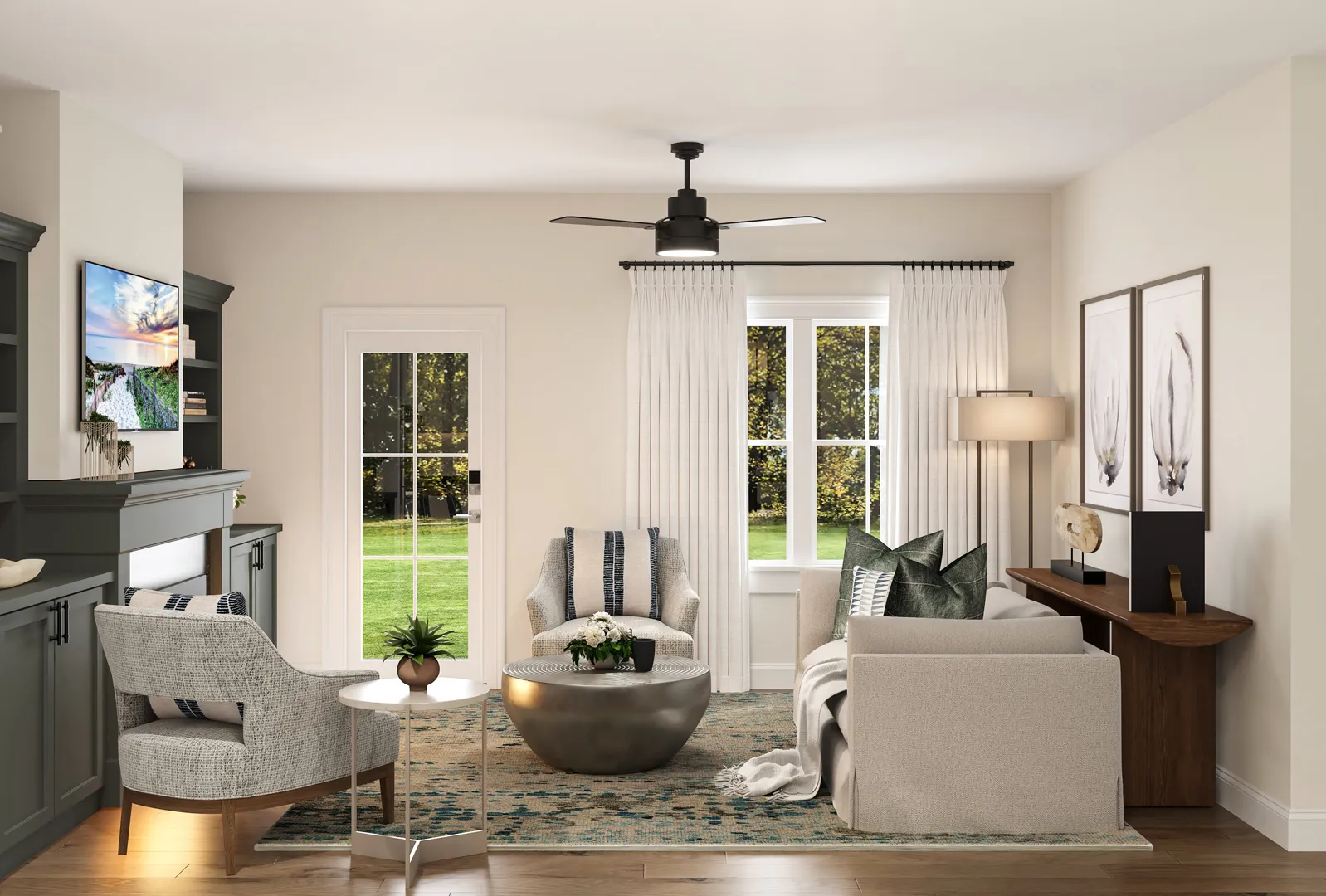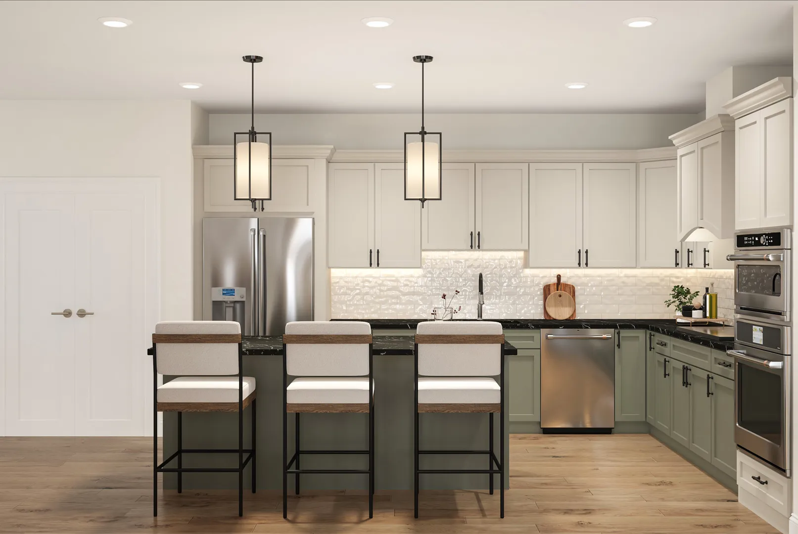 The Hickory is true ground-level living — everything on a single floor with zero stairs anywhere. Two bedrooms, two full baths, den, laundry, private covered patio, and direct access to an attached one-car garage — all on one level. A spectacular bay window floods the open-plan living and dining area with natural light. The closest thing to a ranch-style home in new construction. 2 bedrooms + den, 2 baths, 1,671 sq ft. Limited availability.