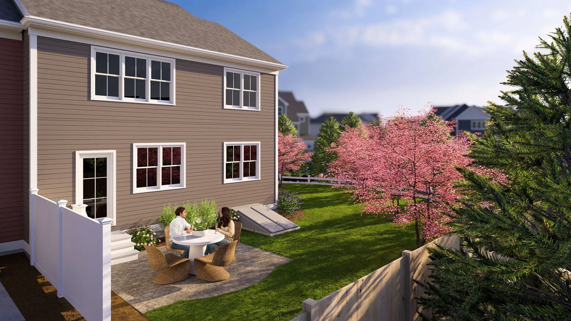 Alden's Reach is Thorndike's newest neighborhood in Plymouth, MA — an award-winning multi-generational community set against 75 acres of protected conservation land. Resort-style pool and poolhouse, walking trails, community garden, tot lot, fire pit, and half-court basketball. Seven floor plans with one-floor living options. Plymouth's waterfront dining, beaches, and Route 3 to Boston and the Cape all within minutes. The Expanded Spruce is a 3-bedroom + den, 2.5-bath townhome with 2,338 sq ft and room to grow. Welcoming covered entry porch. First floor: open-plan living, private deck overlooking conservation land, separate den, pantry, powder room, direct garage access. Second floor: primary suite with huge walk-in closet, upstairs study, two additional bedrooms for privacy, second-floor laundry, and loft. Basement with window wall and walk-out potential — storage now, family room or bedroom suite when you're ready.